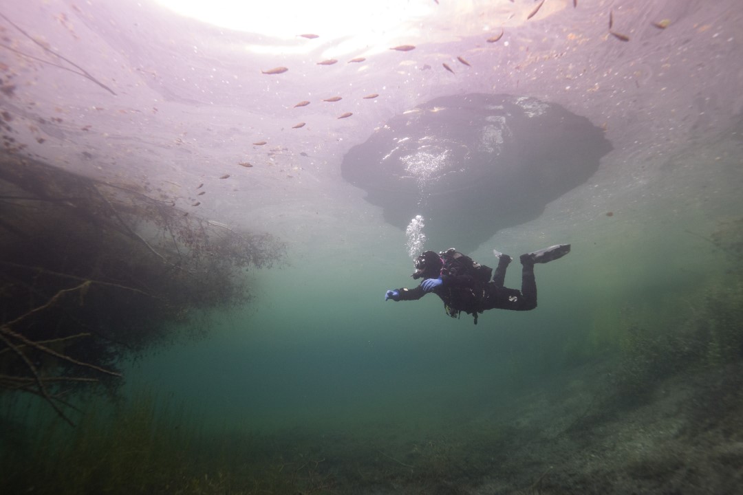 Liebe Tauchlehrer: Übt mit euren Schülern tarieren bis zur „Mastery“ bevor ihr mit ihnen über die bewachsenen Flächen und Quellen taucht. Haltet genügend Abstand zum Grund und seid bereit einzugreifen. Die nachfolgenden Taucher und Generationen werden euch danken auch etwas von dem See zu haben.